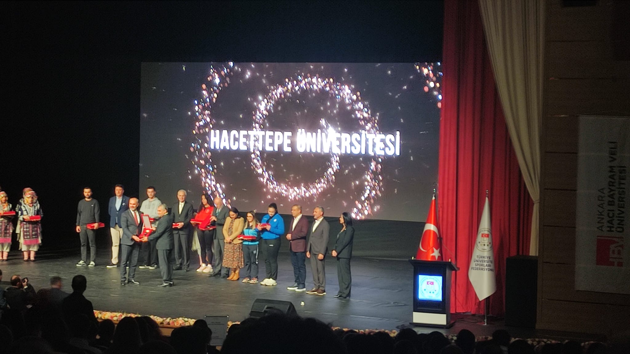 Hacettepe University Vice Rector Prof. Dr. Ahmet Serper, Dean of the Faculty of Sports Sciences Prof. Dr. Tahir Hazır, Vice Dean of the Faculty of Sports Sciences Assoc. Prof. Dr. Arif Mithat Amca, Vice Dean of the Faculty of Sports Sciences Prof. Dr. Şükran Nazan Koşar, Head of the Recreation Department of the Faculty of Sports Sciences Prof. Dr. Hüsrev Turnagöl, Head of the Department of Health, Culture and Sports Hülya Köse, as well as our athletes who made Hacettepe University proud with their achievements in Turkey participated in the Award and Presentation night.