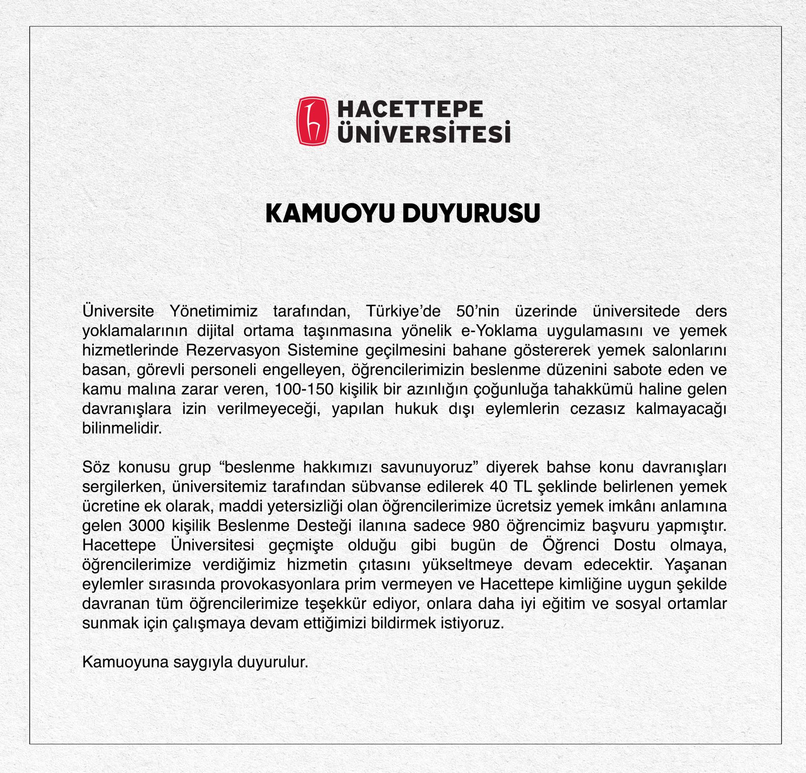 Üniversitemiz yemek salonlarında yaşanan olaylara ilişkin kamuoyu duyurusu: